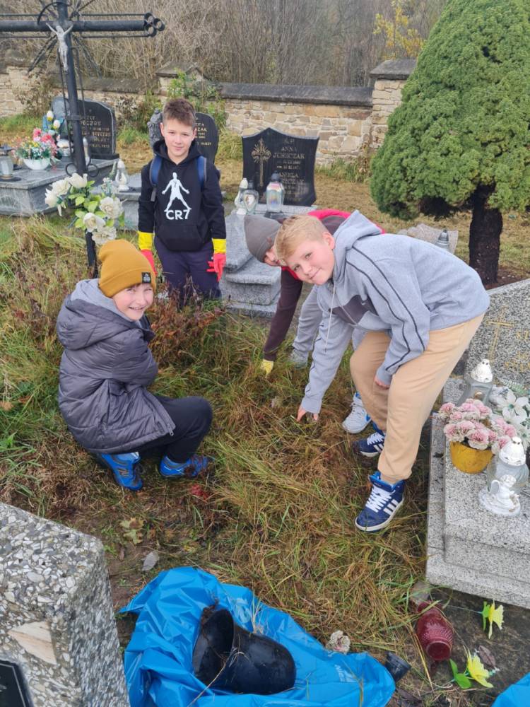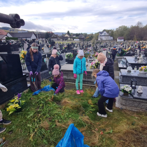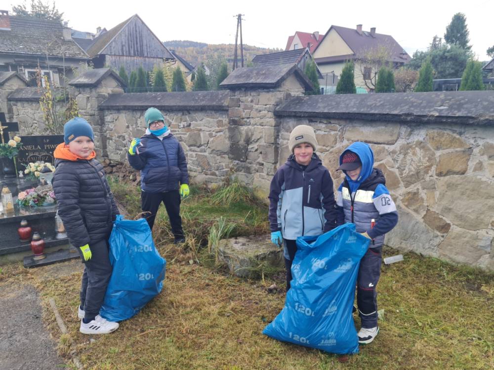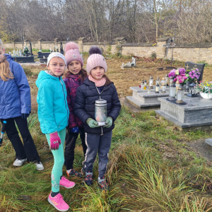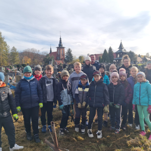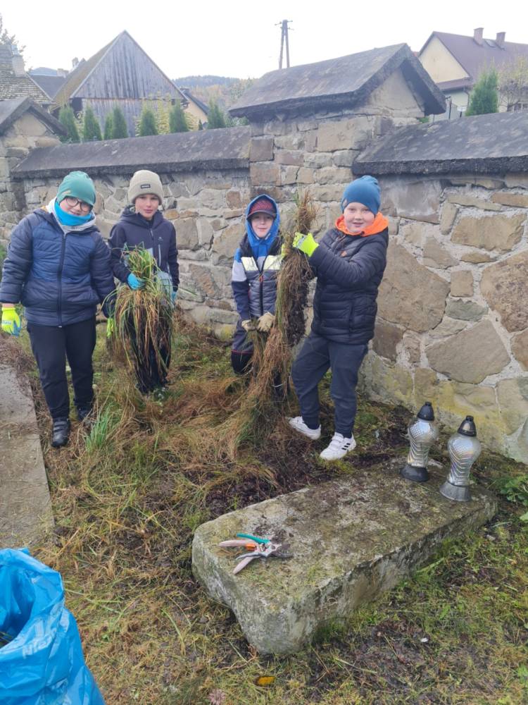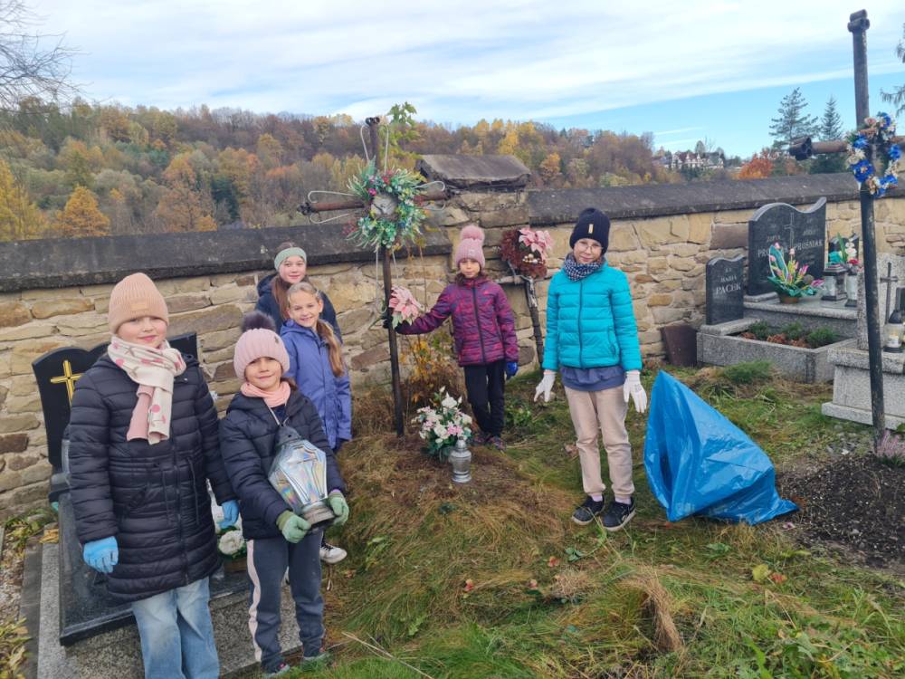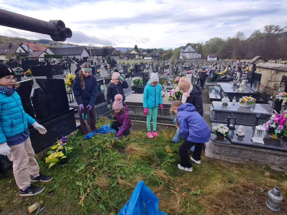 Pod opieką dorosłych dzieci z zapałem i zaangażowaniem porządkowały mogiły, które z różnych powodów zostały zapomniane. Uczniowie grabili liście, usuwali trawę i inne zanieczyszczenia, a także ustawiali znicze i kwiaty, przywracając należny szacunek miejscom spoczynku. Dzięki ich pracy cmentarz zyskał bardziej zadbany wygląd, a niektóre groby, o których nikt już nie pamięta, znów rozbłysły światłem pamięci.