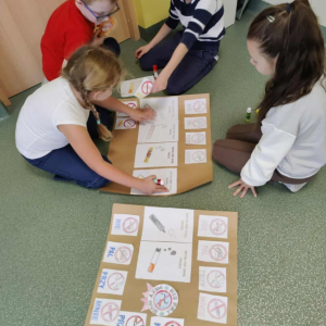 Zajęcia przeprowadzono według zmodyfikowanych scenariuszy programu. Uczniowie obejrzeli krótkie filmiki oraz prezentację multimedialną, która dotyczyła zarówno zdrowego odżywiania, jak i palenia biernego. Dzieci z zapałem brały udział w pogadance na temat zdrowego trybu życia, odżywiania i szkodliwości dymu tytoniowego. Następnie kolorowały, układały obrazki z elementów, rozwiązywały krzyżówki i quizy online, opowiadały historyjki obrazkowe o tematyce antytytoniowej. Podsumowaniem programu było przygotowanie przez uczniów plakatów, związanych z tematyką programu i rozwieszenie ich na szkolnym korytarzu. Wszyscy uczniowie bardzo chętnie i z dużym zaangażowaniem uczestniczyli w zajęciach.