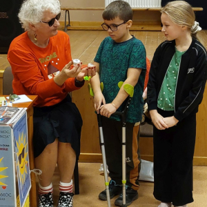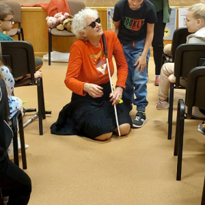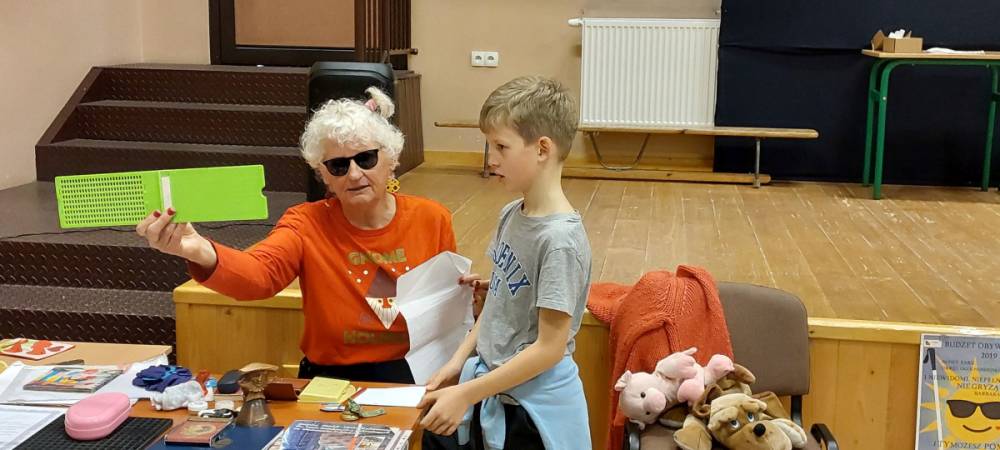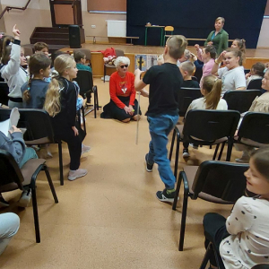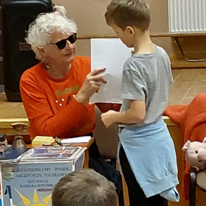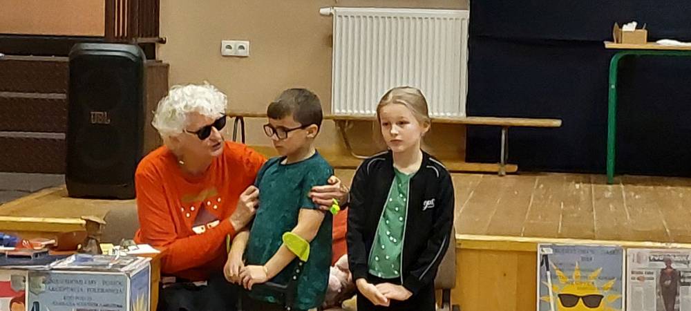 We wtorek 4 listopada 2025r. odbyło się w naszej szkole dla klas I-III spotkanie z osobą niewidomą Panią Barbarą Sowińską, która gościła u nas w ramach projektu „Niewidomi- niepełnosprawni nie gryzą”.