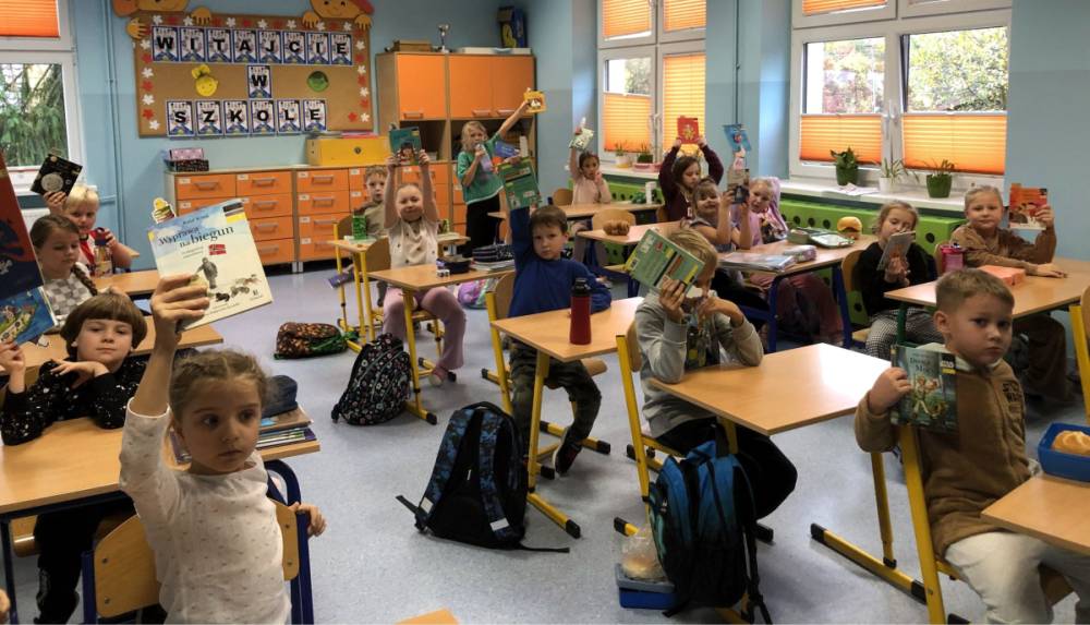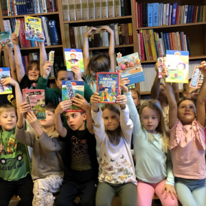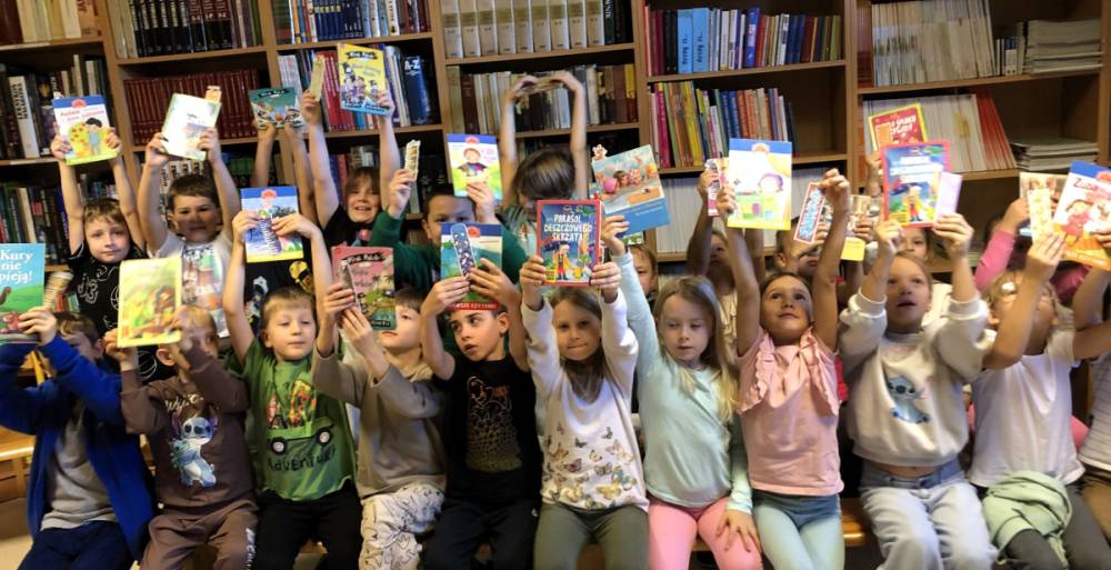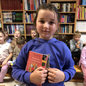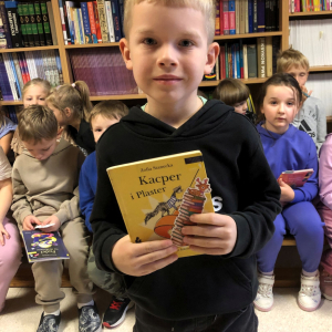 W połowie października 2025r. biblioteka szkolna gościła po raz pierwszy uczniów klasy Ia i Ib wraz ze swoimi wychowawczyniami p. A. Swachtą i p K. Zych.