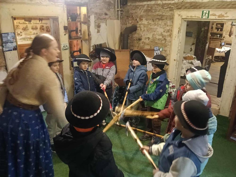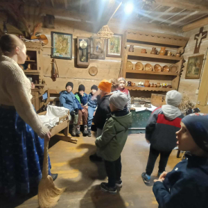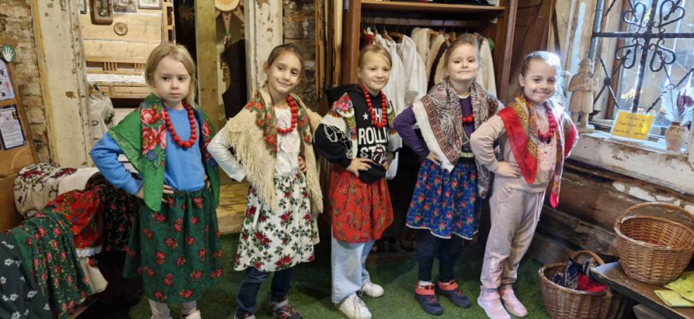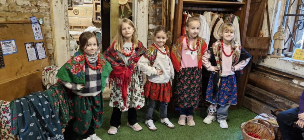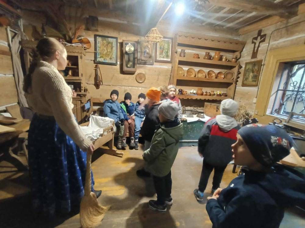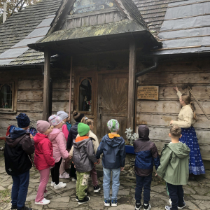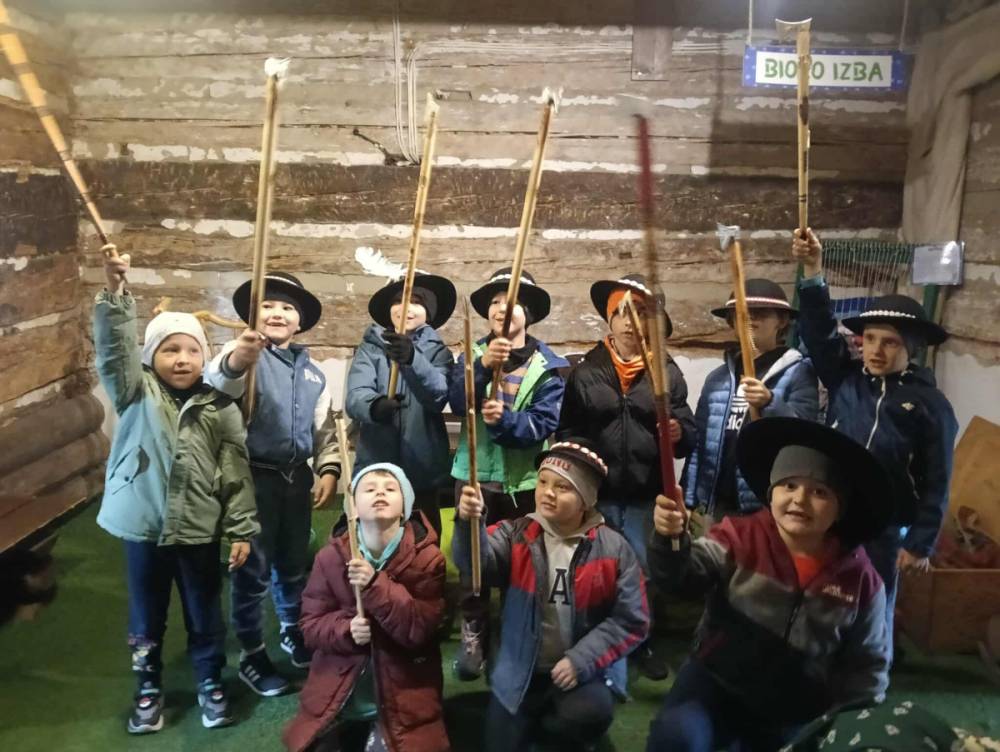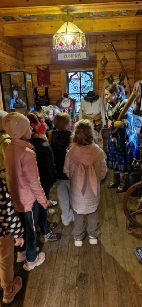 Uczniowie klas pierwszych pod opieką swoich wychowawczyń p. A. Swachty i p. K. Zych wybrali się na wycieczkę do Muzeum Górali i Zbójników w Rabce-Zdroju. Na początku dzieci odwiedziły tradycyjną góralską chałupę, gdzie miały okazję zobaczyć, jak wyglądało życie codzienne dawnych górali – jak mieszkali, czym się zajmowali i jakie kultywowali tradycje. W tej niezwykłej przestrzeni chłopcy zatańczyli góralski taniec, a dziewczynki mogły się przebrać i wystroić jak prawdziwe góralki.