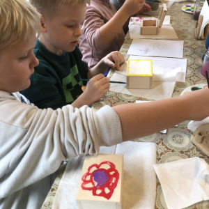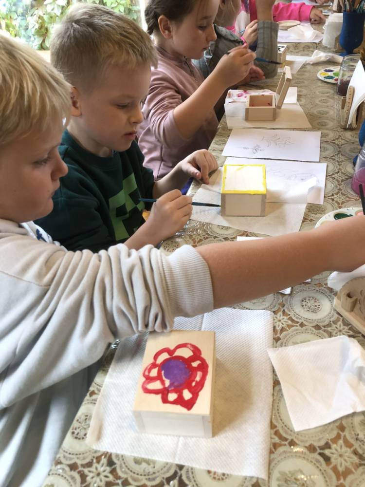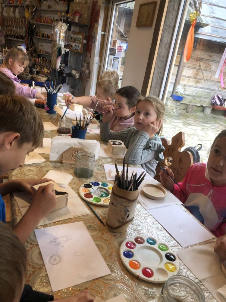 Na zakończenie uczniowie wzięli udział w warsztatach artystycznych, podczas których własnoręcznie malowali drewniane ptaszki, koniki, szkatułki i inne ozdoby. Każdy stworzył wyjątkową pamiątkę, którą mógł zabrać ze sobą do domu.