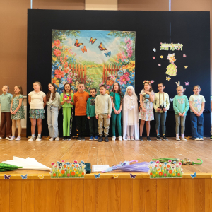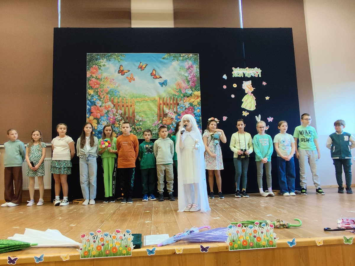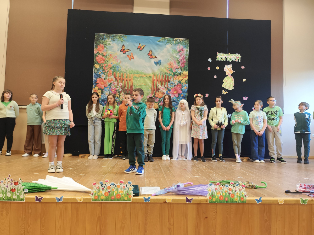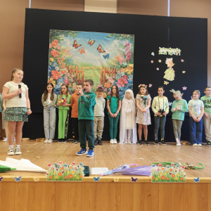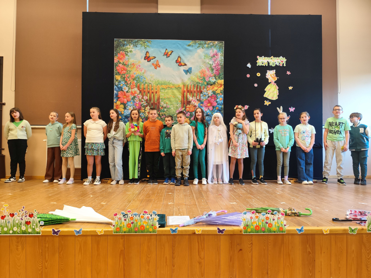 W piątek, 20 marca 2026r. z okazji pierwszego dnia Wiosny, klasa IIIa, pod kierunkiem swojej wychowawczyni pani Małgorzaty Pandyry oraz pani Joanny Polaniak przygotowała okolicznościowe przedstawienie. Występy trzecioklasistów oglądali uczniowie z klas młodszych, wraz ze swoimi wychowawcami oraz wicedyrektor szkoły Pani Agnieszka Flaga. Na tle barwnej, wiosennej scenerii mali aktorzy z wielkim zaangażowaniem wcielili się w role budzącej się przyrody wdzięcznie prezentując własne umiejętności aktorskie zgromadzonej widowni. Te umiejętności to nie tylko talent aktorski, ale również sprawności wokalne i taneczne. Po zakończonym przedstawieniu, uczniowie biorący udział w Szkolnym Konkursie Pięknego Czytania z rąk pani wicedyrektor otrzymali pamiątkowe dyplomy i nagrody rzeczowe. Wszystkim uczestnikom serdecznie gratulujemy!