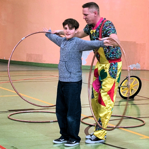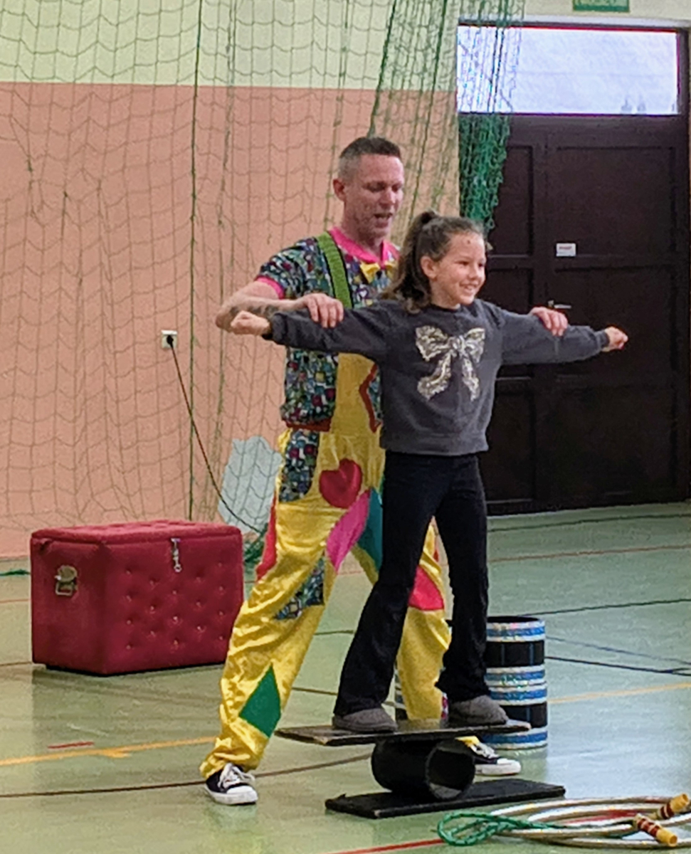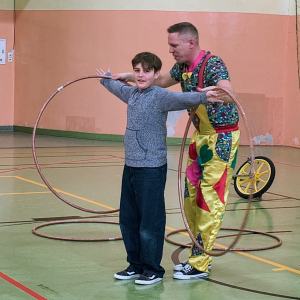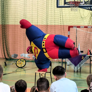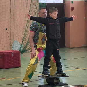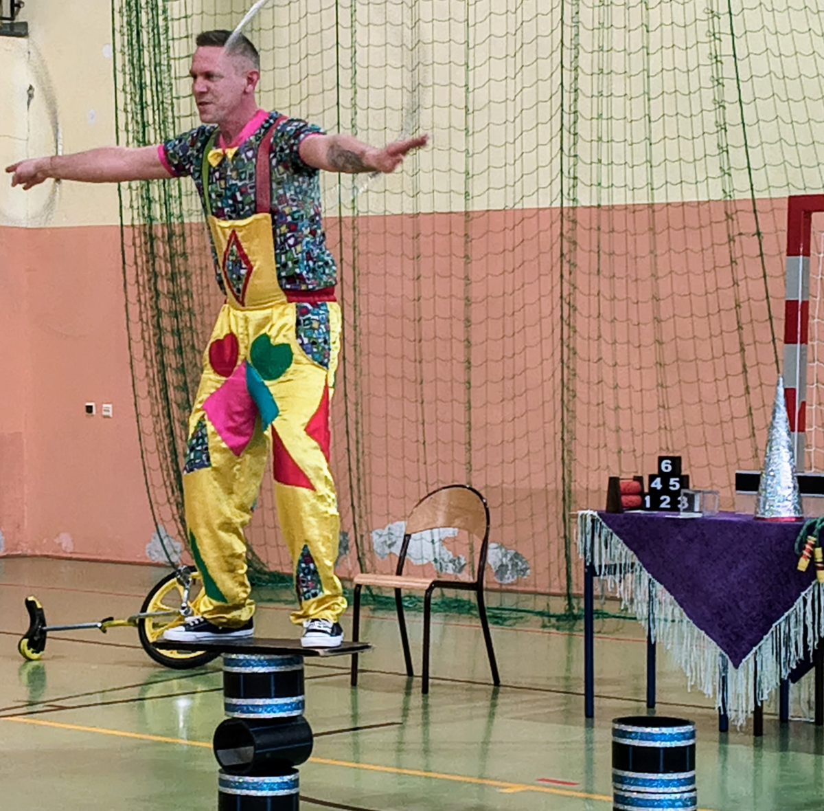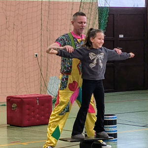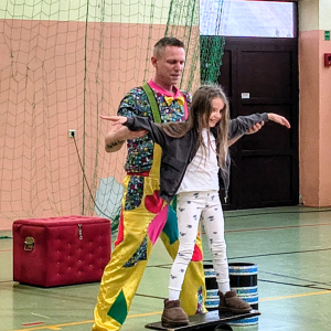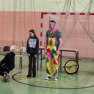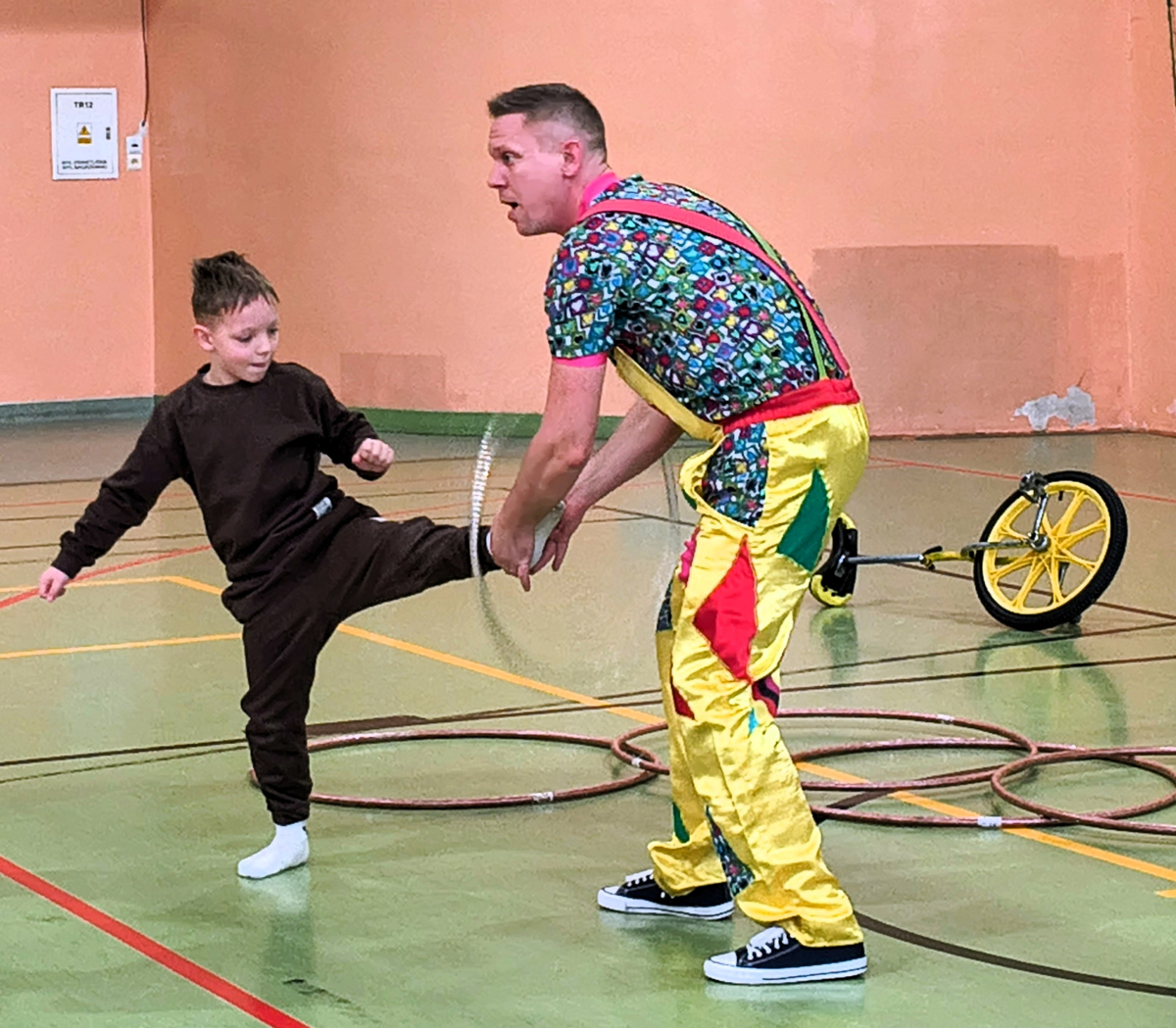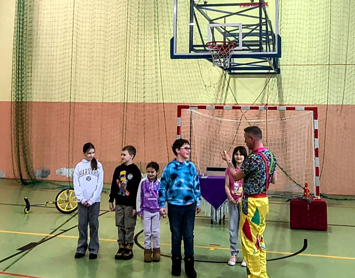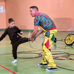 Tuż przed feriami, we czwartek 29 stycznia 2026r., gościliśmy w naszej szkole ukraińskich artystów z mobilnego „Cyrku Szok”. Cyrk ten regularnie odwiedza polskie szkoły, oferując interaktywne pokazy dla dzieci, zapewniając rozrywkę i umożliwiając uczniom udział w prostych sztuczkach, generując niesamowite wrażenia i gromkie brawa. Tak też było podczas czwartkowego pokazu, kiedy to młodsi uczniowie z klas I-IV mieli okazję wcielić się w prawdziwych akrobatów, obejrzeć sztuczki iluzjonistyczne i akrobatyczne. Przed naszą publicznością wystąpił między innymi wesoły klaun, miś polarny oraz dmuchany Spiderman. Spotkanie przebiegało w atmosferze znakomitej zabawy i mnóstwa wrażeń.