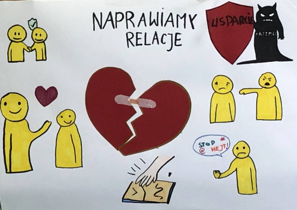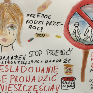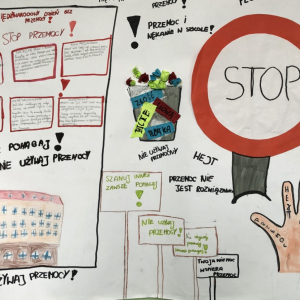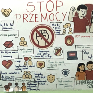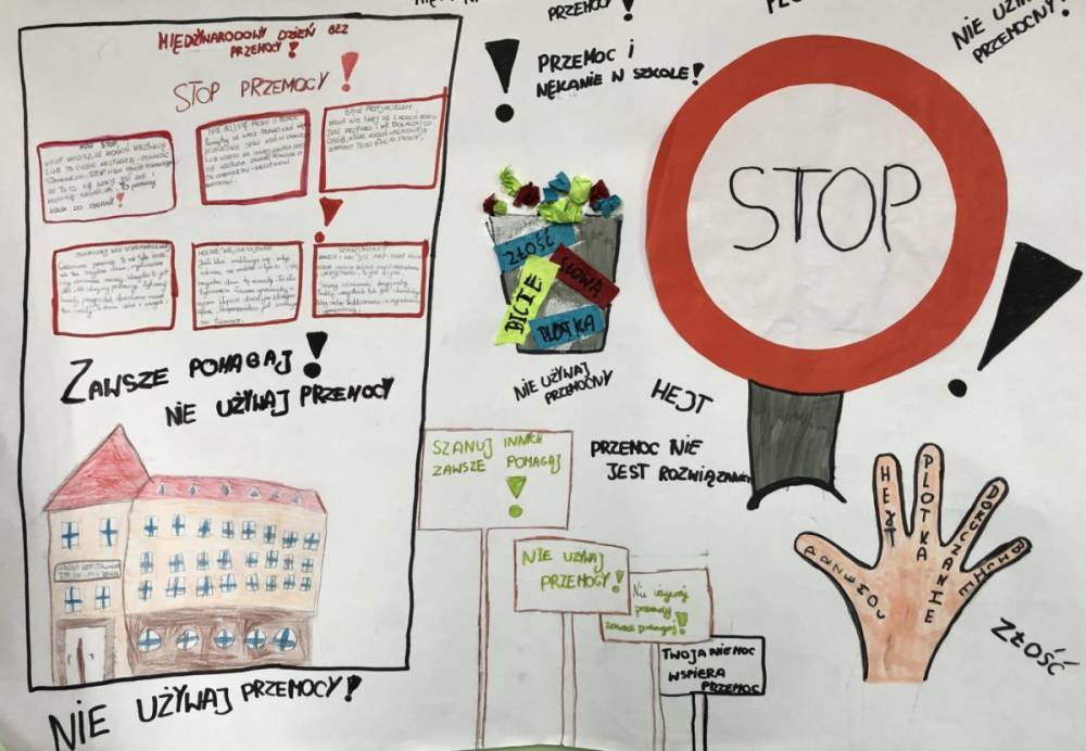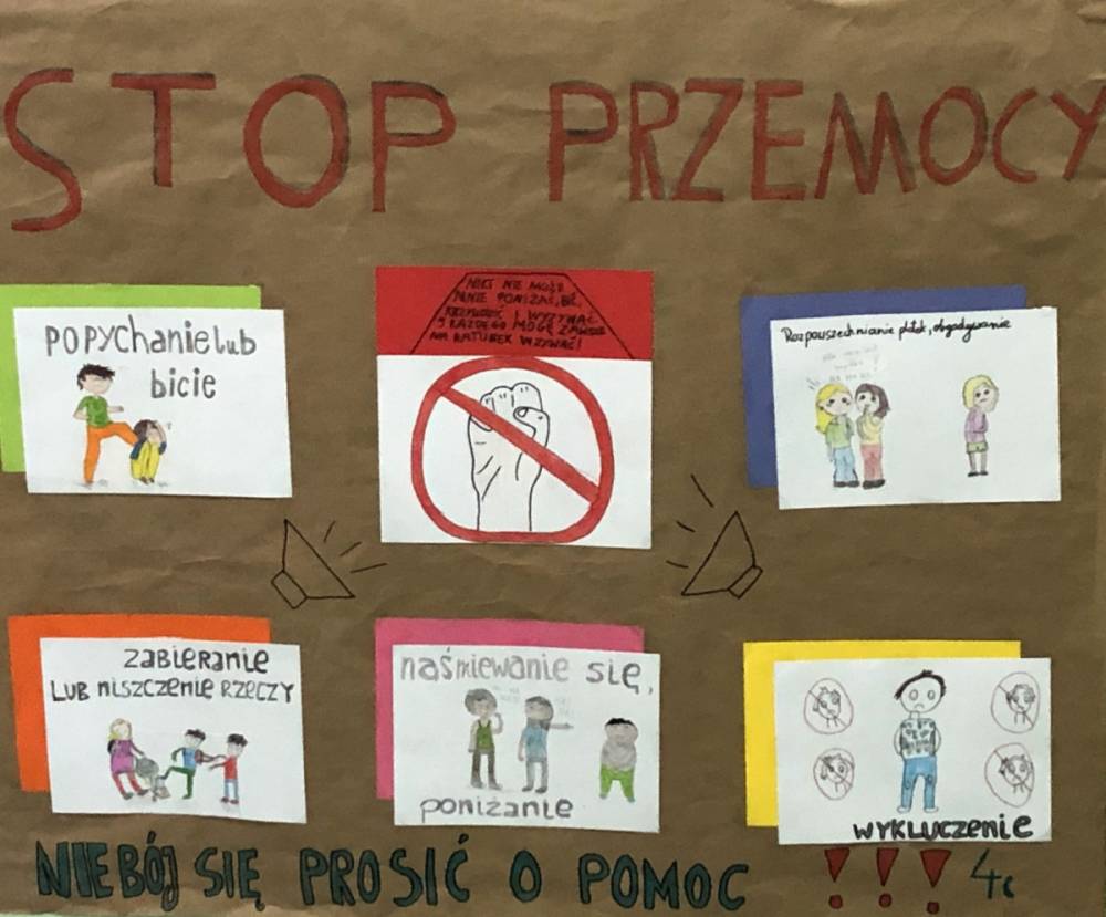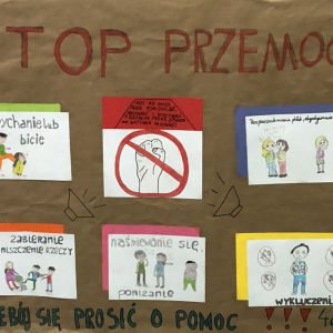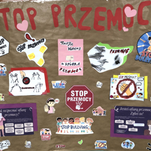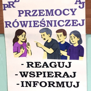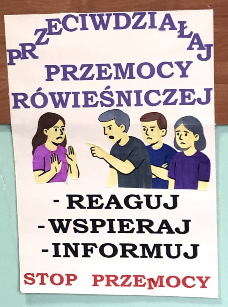 Od 29 września 2025r. do 3 października 2025r. z inicjatywy Ministerstwa Edukacji Narodowej w naszej szkole trwała akcja pod hasłem „Tydzień Przeciwdziałania Przemocy Rówieśniczej”. Celem akcji było wspieranie dzieci i młodzieży w budowaniu zdrowych i pełnych szacunku koleżeńskich relacji, ale przede wszystkim przeciwdziałanie przemocy rówieśniczej. Tworzenie w szkole atmosfery bezpieczeństwa i szacunku do drugiego człowieka jest priorytetem i nikt nie powinien godzić się na przemoc czy wykluczenie. Codzienne rozmowy, reagowanie na niepokojące sytuacje uczą naszych uczniów, jak radzić sobie z emocjami i jak budować zdrowe relacje rówieśnicze. W ramach akcji nasi młodsi uczniowie mieli okazję wysłuchać tekstów literackich, które poruszały tematykę przemocy rówieśniczej oraz namalować tematyczne prace plastyczne. Uczniowie klas starszych, począwszy od czwartoklasistów- wykonali liczne plakaty o tematyce antyprzemocowej, które zawisły w naszej szkolnej przestrzeni, na korytarzach i w salach lekcyjnych. Co można zrobić, żeby Twój kolega poczuł się lepiej w trudnej sytuacji? Jak mogę mu pomóc? Na te i inne pytania odpowiadali nasi uczniowie podczas zajęć z wychowawcami z okazji „Tygodnia Przeciwdziałania Przemocy Rówieśniczej”.