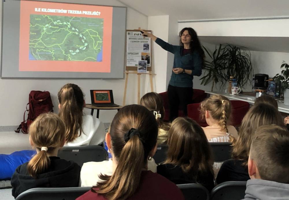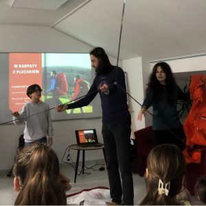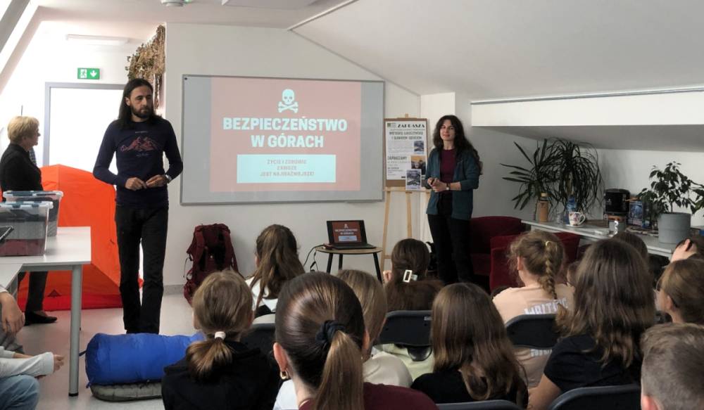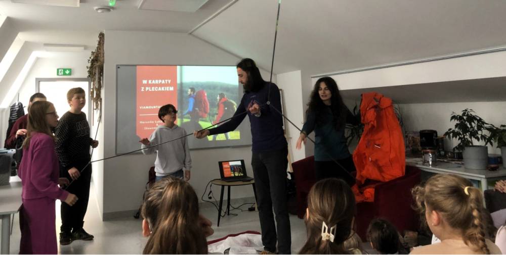 Warsztaty poprowadzili przewodnicy VIA Mountains - Weronika Łukaszewska i Sławomir Sanocki, którzy od wielu lat dzielą się swoją wiedzą i pasją do górskich wędrówek. W programie zajęć nasi piątoklasiści mogli nauczyć się rozpoznawać tropy zwierząt oraz poznać zasady prawidłowego pakowania plecaka w góry. Uczniowie mieli okazję zaznajomić się z zasadami bezpieczeństwa przy spotkaniu z dzikimi zwierzętami i agresywnymi psami. Dowiedzieli się również o zasadach bezpiecznej organizacji wycieczek w góry oraz normach zachowania w naturze –„Leave no trace -nie zostawiaj śladu”.