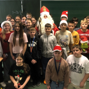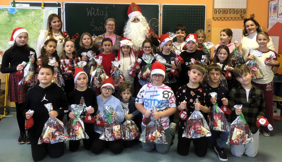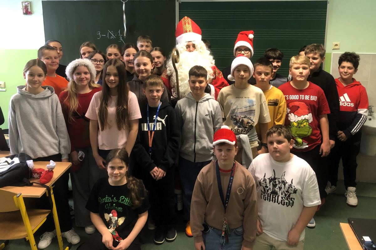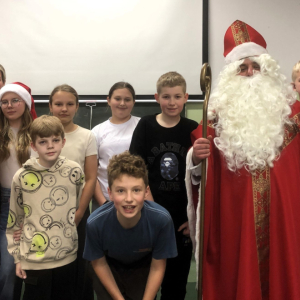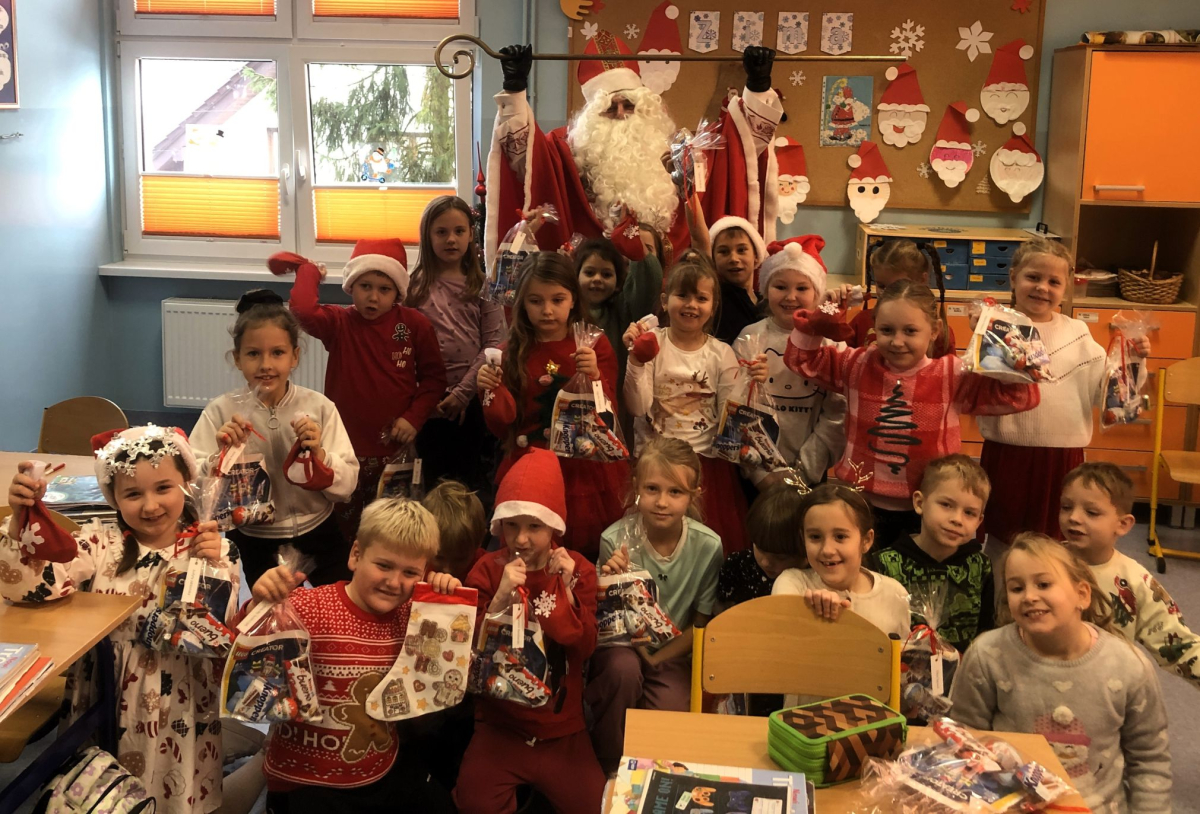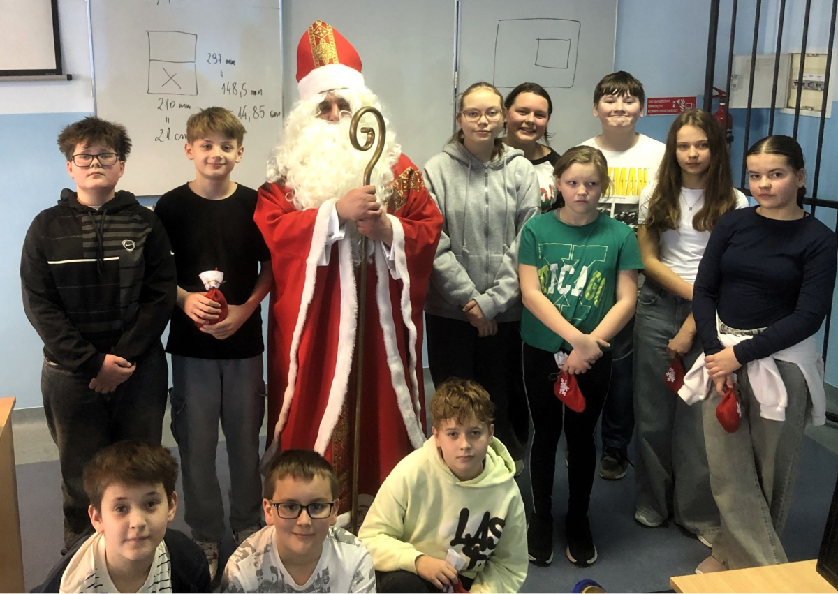 Odwiedziny świętego Mikołaja to jeden z najbardziej oczekiwanych przez dzieci dni w roku. Już od rana w piątek 5 grudnia 2025r., szczególnie nasi młodsi uczniowie z wielką niecierpliwością spoglądali na drzwi i nadsłuchiwali mikołajkowych dzwoneczków. Święty Mikołaj, jak co roku nie zawiódł, przybył do lubieńskiej szkoły z workiem pełnym słodyczy i innych prezentów, w towarzystwie uroczych Śnieżynek obdarowując tych najmłodszych i nieco starszych. Były piosenki i laurki dla Świętego Mikołaja, wspaniale wspomnienia i moc radości. Uczniowie obiecywali, że będą wzorowo się zachowywać i pilnie uczyć a Mikołaj zapewnił, że za rok też nas odwiedzi. Serdecznie dziękujemy Świętemu Mikołajowi i jego pomocnikom, za obecność, poświęcony czas, wkład włożony w przygotowanie spotkania w naszej szkole oraz za wspaniałe prezenty. Wizyta tak wyjątkowego Gościa wprowadziła wszystkich w radosny klimat zbliżających się Świąt Bożego Narodzenia a zdjęcia ze Świętym Mikołajem będą wspaniałą pamiątką tego spotkania. Do zobaczenia za rok!!!