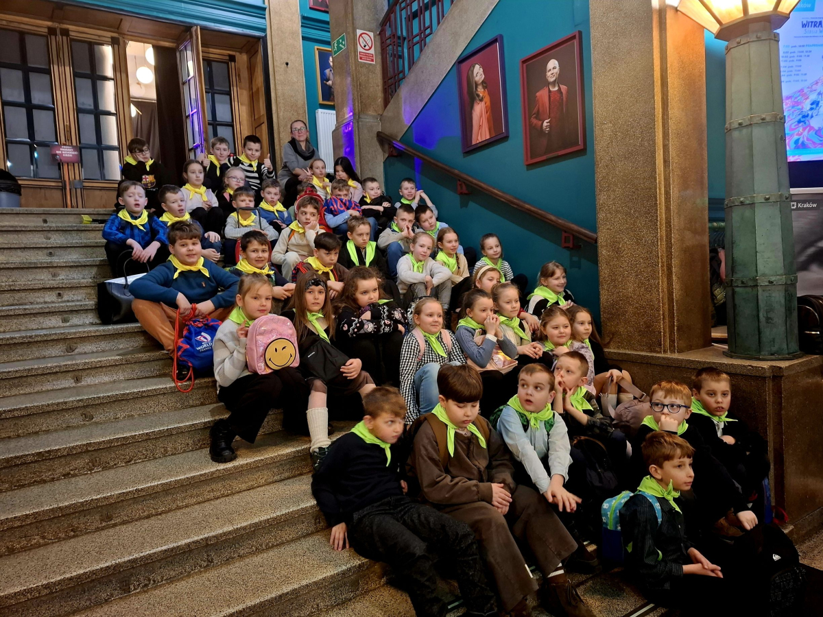 W dniu 26 lutego, klasy 2a i 2b udały się na wycieczkę autokarową do Krakowa celem obejrzenia spektaklu teatralnego świeżo przerobionej lektury pt. „Niezapomniane przygody dziesięciu skarpetek”. Pierwszym punktem naszej wycieczki były ciekawe warsztaty „Sekrety sceny” podczas których, uczniowie mogli zajrzeć za kulisy sceny i sprawdzić co piszczy w zakamarkach teatru Groteski. A dzieje się tam naprawdę dużo. Zwiedzanie niedostępnych na co dzień miejsc, takich jak garderoba czy sala prób, sprawiło, że na chwilkę poczuliśmy się tak, jakbyśmy sami tworzyli magię teatru. Uczniowie z entuzjazmem i zaciekawieniem oglądali prezentację różnych typów masek i lalek, wykorzystywanych w przedstawieniach teatralnych. Jednak możliwość przymierzenia takiej maski, dana tylko pojedynczym szczęściarzom ze względu na czas, była niezmiernie fascynującym doświadczeniem. Sam spektakl „Niezwykłe przygody dziesięciu skarpetek” był widowiskowy i dostarczył nam dużą porcją dobrego humoru. Ciekawy spektakl, fajna ekipa, słoneczna pogoda równa się udana wycieczka.