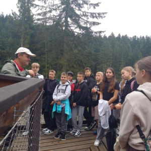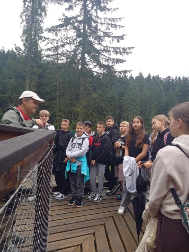 Na ścieżce edukacyjnej, pod opieką przewodnika, uczniowie dowiedzieli się jacy leśni lokatorzy mieszkają w Gorcach. Poznali ciekawostki związane z tym jak żyje las. Z każdym krokiem byli coraz bliżej koron drzew, a dotykając tablic edukacyjnych, sprawdzali jakie kryją dla nich niespodzianki.