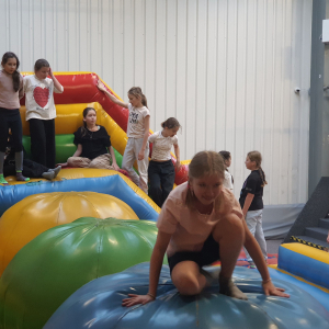 Po przyjeździe do GoJump uczniowie zostali zapoznani z regulaminem bezpieczeństwa oraz zasadami korzystania z trampolin. Następnie, pod czujnym okiem instruktorów, rozpoczęły się zajęcia ruchowe. Dzieci mogły korzystać z wielu atrakcji, takich jak trampoliny sportowe, baseny z gąbkami, ścieżki akrobatyczne oraz zabawy zespołowe. Uczniowie wykazali się dużą aktywnością, sprawnością fizyczną i wzajemną współpracą. Czas spędzony w parku trampolin był pełen radości, śmiechu i pozytywnych emocji.